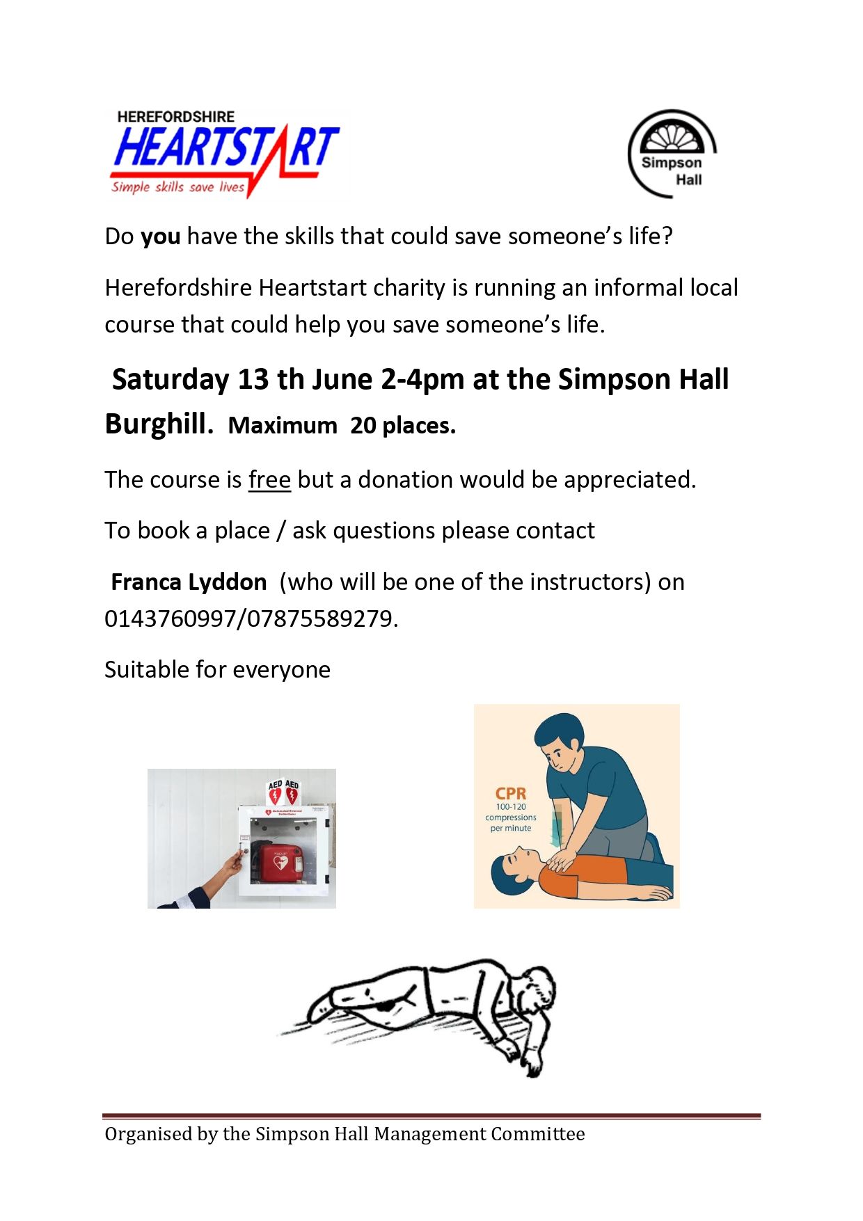 Simpson Hall is a lovely village hall, with fantastic facilities for all occasions comprising of two rooms. From our main hall with a capacity for 100 people to our smaller meeting room, we can accommodate most events, both private and public.